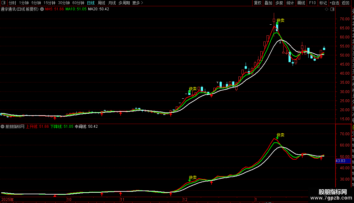 中间线:EMA(下降线,5),COLORWHITE,LINETHICK2;