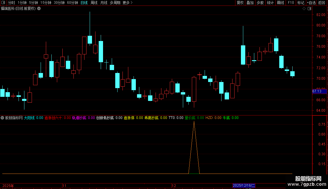 追涨创六十:IF(V1>60 AND V2,0.8,0),COLORRED;