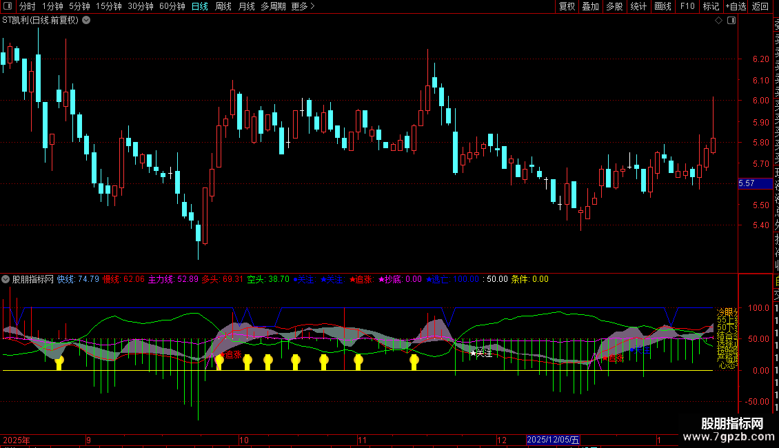 ★抄底:IF(CROSS(多头,慢线) AND 快线>=REF(快线,1) AND 多头>=REF(多头,1)