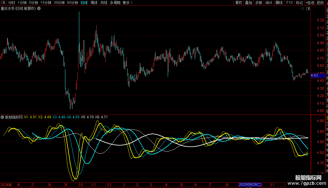 1、细黄色线上穿粗黄色线,短线买入,下穿,卖出;