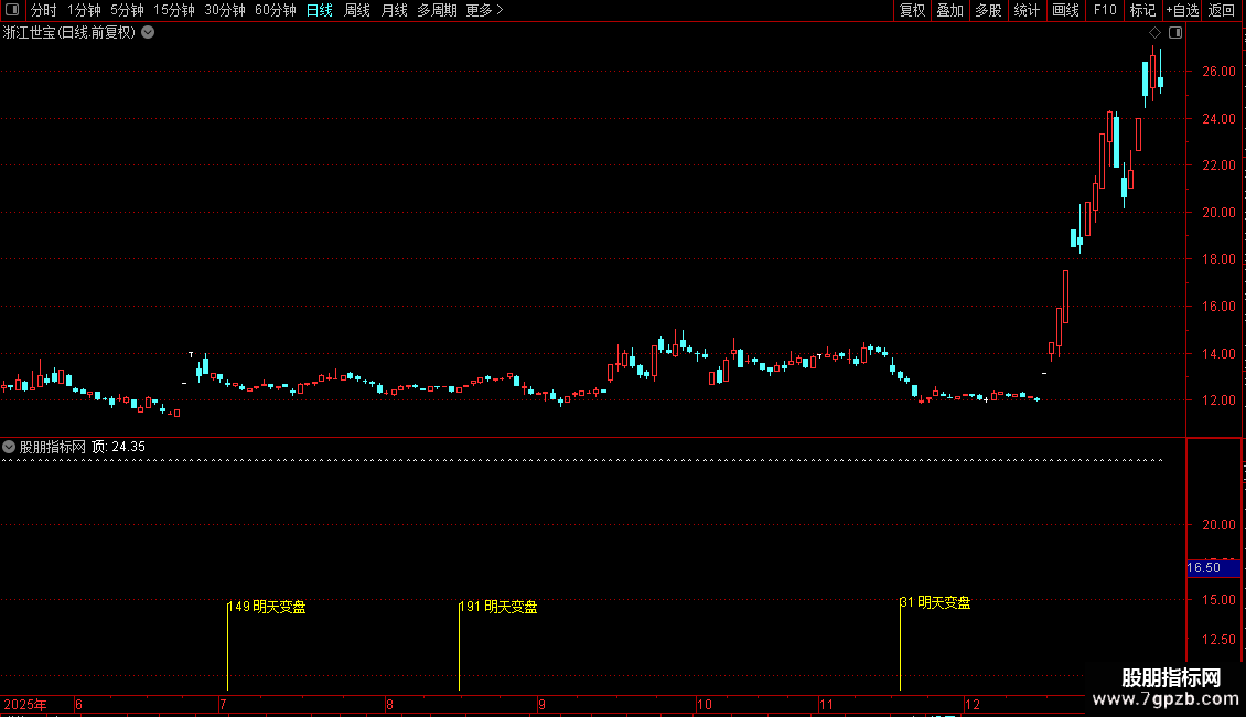 DRAWTEXT(成立距今=(32*8)-1,高-高*0.016,'255 明天变盘'),COLORYELLOW;