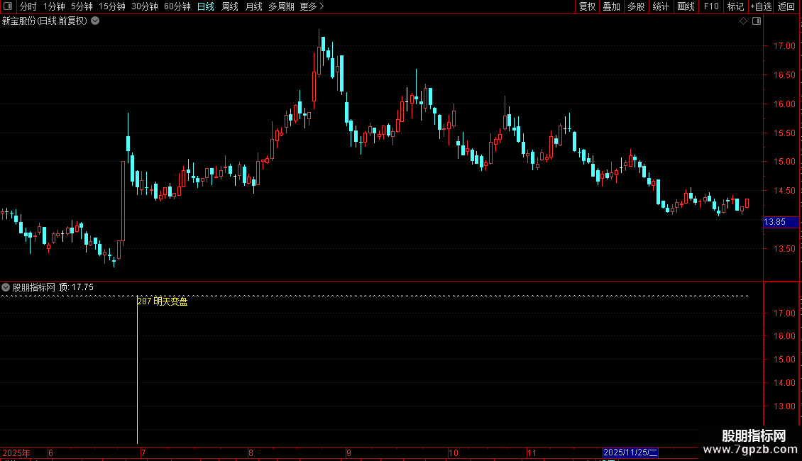 DRAWTEXT(成立距今=(32*9)-1,高-高*0.016,'287 明天变盘'),COLORYELLOW;