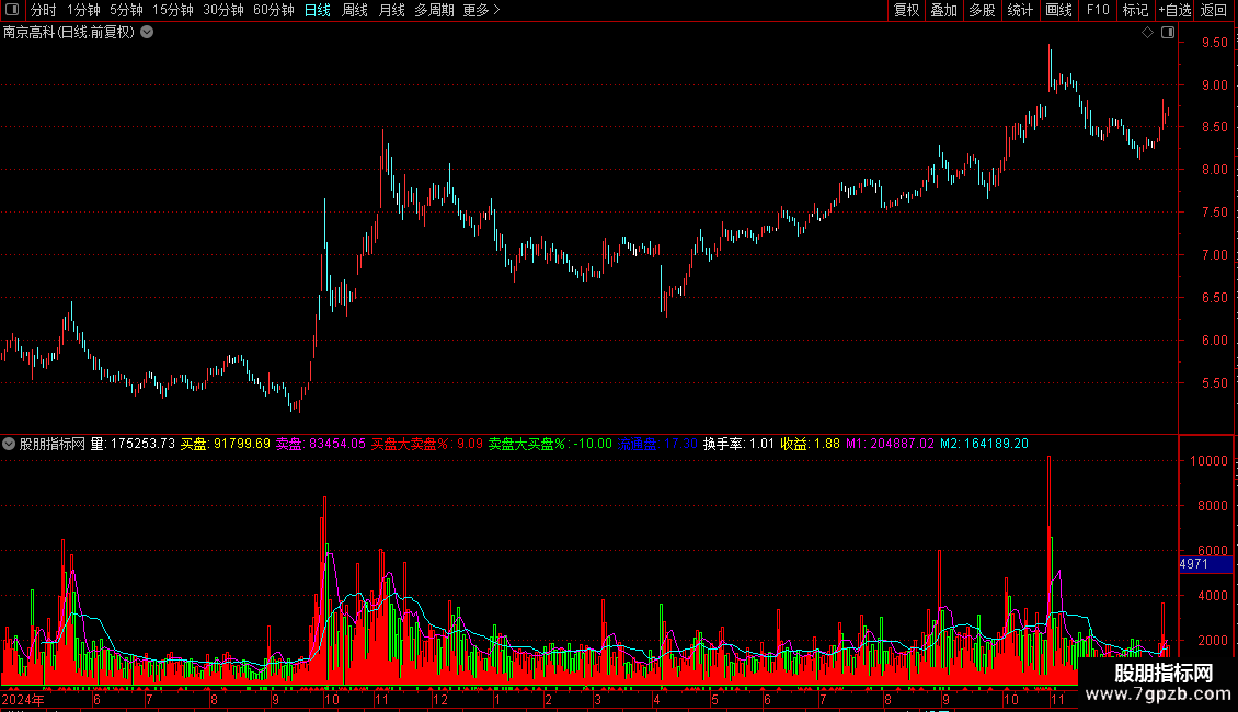 输出量:成交量(手),线宽为0