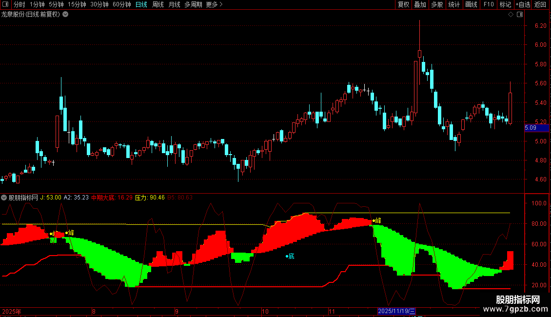 DRAWTEXT(CROSS(A2,J) AND A2>N4,A2+4.22,'●峰'),COLOR00FFFF;