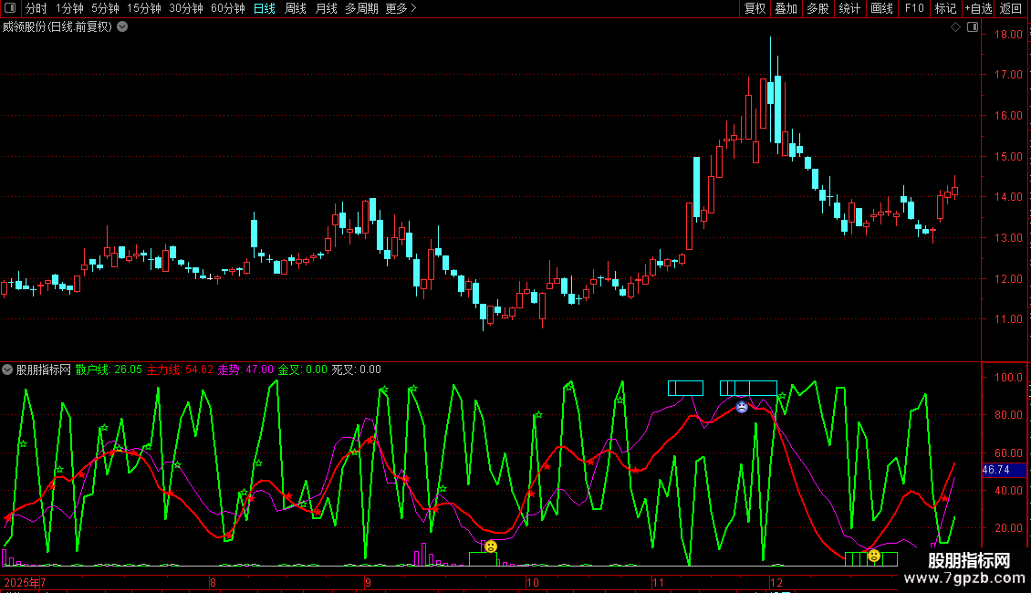 DRAWTEXT(死叉,散户线,'☆'),COLOR00F300;