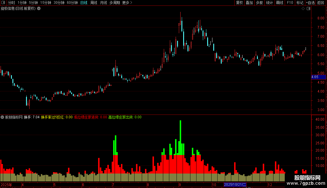 这个指标的特点就是让你更直观看清每一天的换手率。一切尽显眼底于以一网打尽。